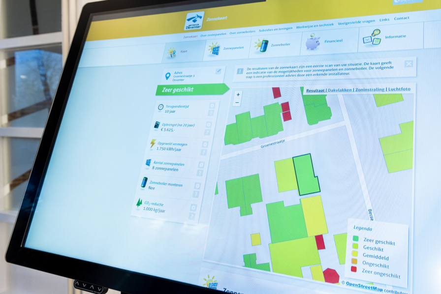 De Zonnekaart is daar een goed voorbeeld van: een toegankelijke kaart waarmee inwoners kunnen zien of hun dak geschikt is voor zonnepanelen.